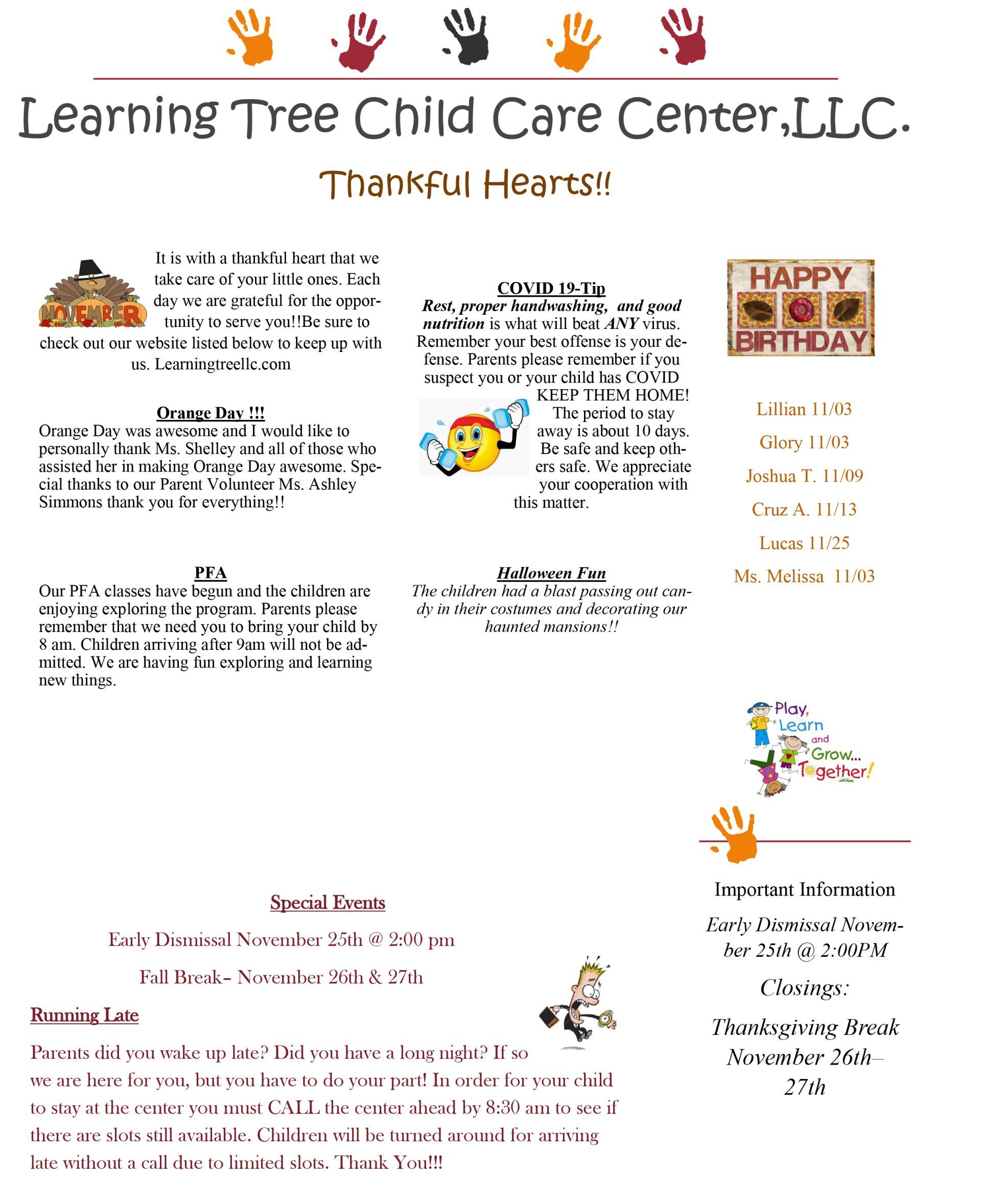 Learning Tree Childcare Center LLC Newsletter